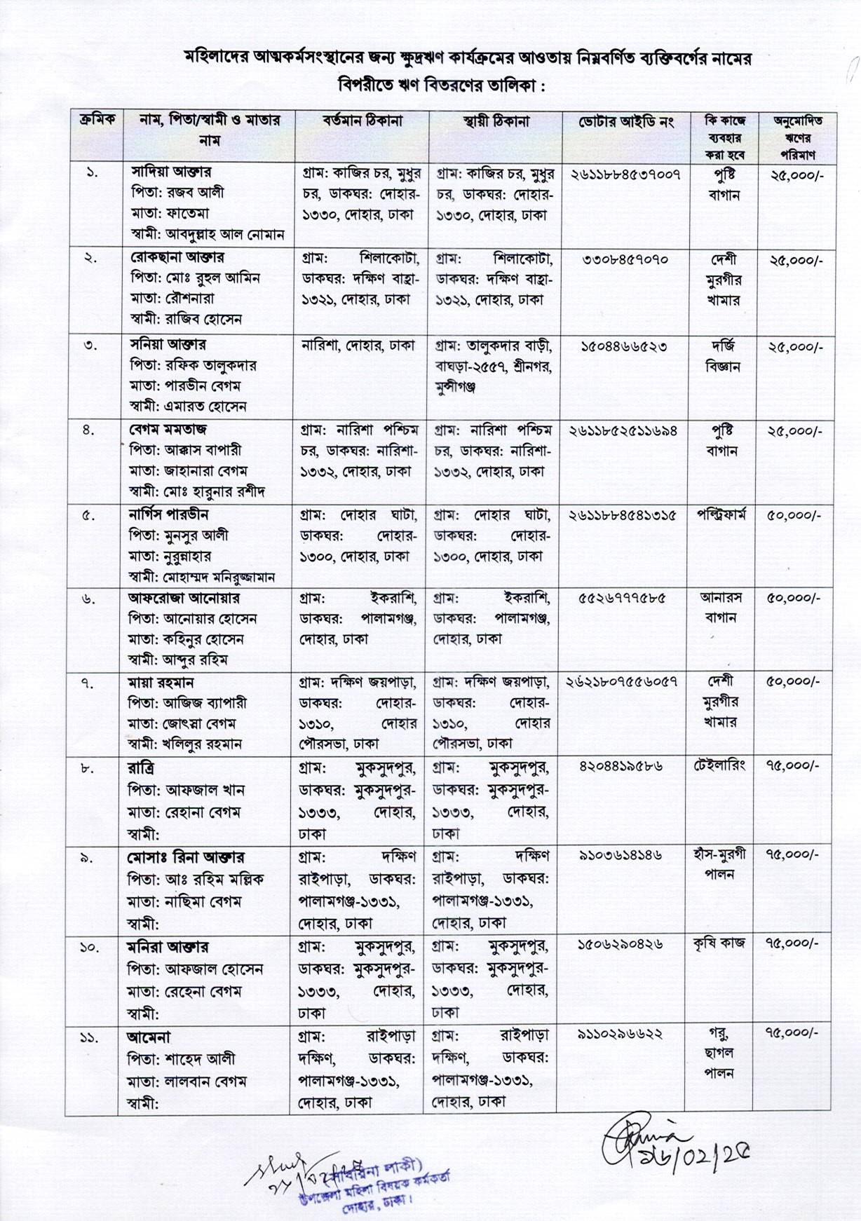 ক্ষুদ্রঋণ প্রাপ্ত উপকারভোগীর তালিকা :